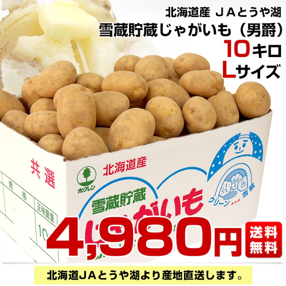 北海道より産地直送 JAとうや湖 雪蔵貯蔵じゃがいも (男爵) Lサイズ 10キロ 送料無料 芋 ジャガイモ 馬鈴薯