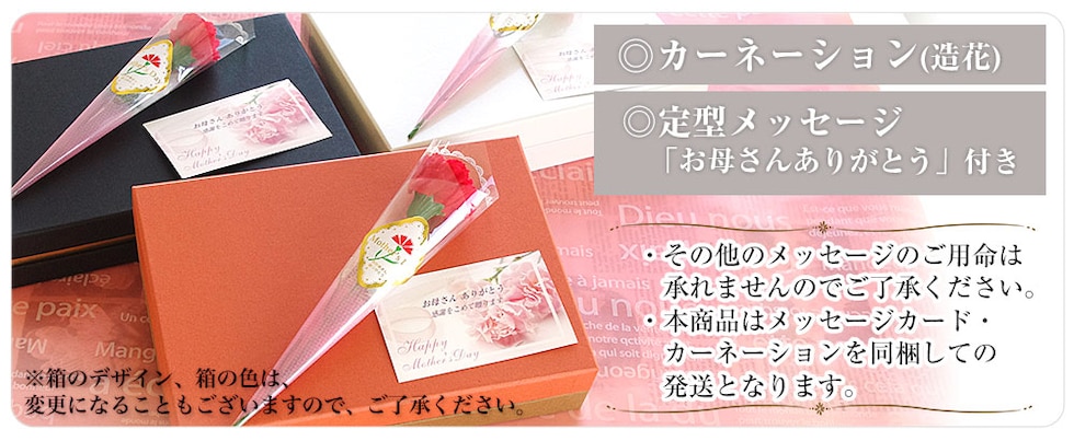 カーネーション(造花)、メッセージカード(お母さんありがとう)付き