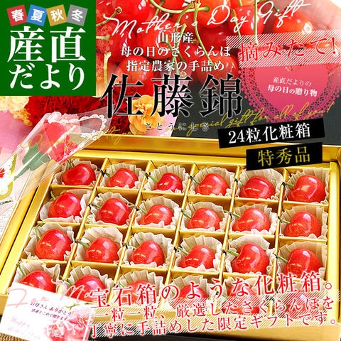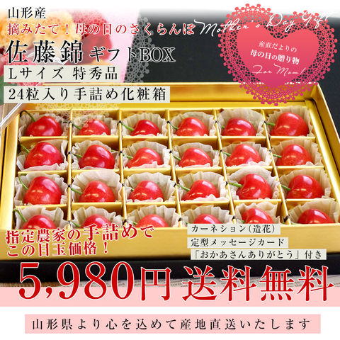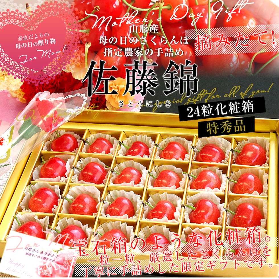 【母の日ギフト】山形県より産地直送 さくらんぼ 佐藤錦 大粒のLサイズ 特秀品 手詰め24粒化粧箱入り 送料無料 母の日プレゼント 桜桃 さとうにしき