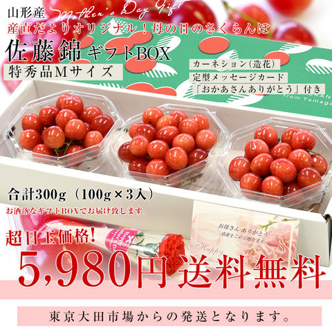 【母の日ギフト】山形県産 温室栽培さくらんぼ 佐藤錦 特秀品 合計300g ダイヤパック×3P (約100g×3P) 送料無料 母の日プレゼント 桜桃 さとうにしき
