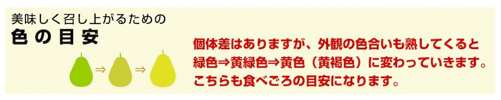 商品がご自宅に到着した時、まだ緑色の表皮で硬い場合がございます。 その際は、少し室温で保管して頂き、3、4日たって軸の周りが柔らかくなり、表皮が黄色みがかかり、香りが出たら食べごろになります。