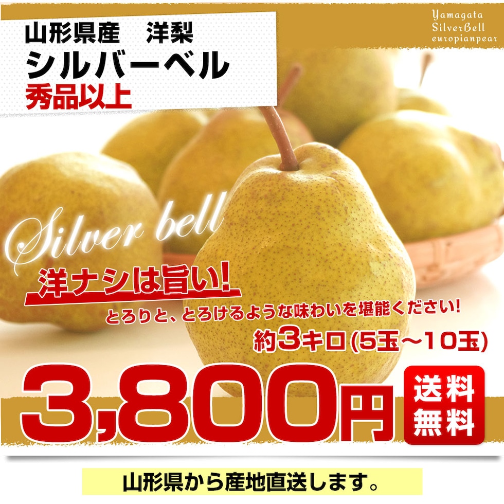 山形県産 洋梨シルバーベル 秀品以上 3キロ (5玉から10玉) 送料無料 洋梨