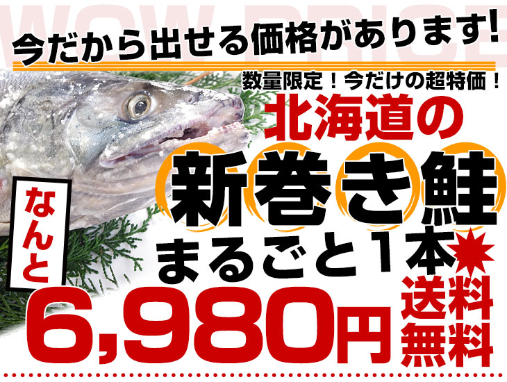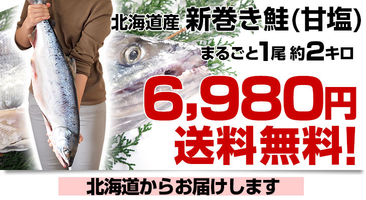 北海道から産地直送 北海道産 新巻き鮭(甘塩) まるごと1尾 2キロ 送料無料 さけ サケ ギフト