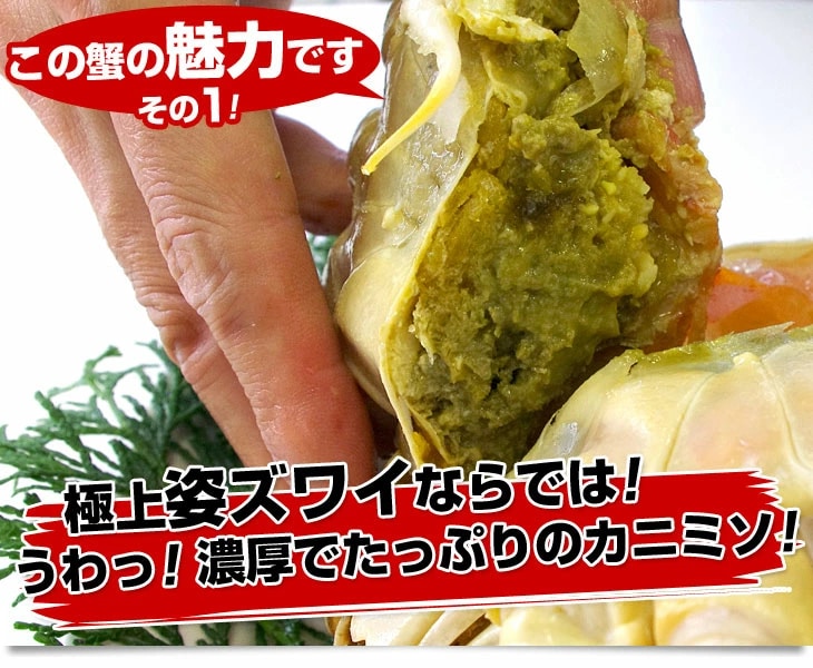 一目おかれる特選本ズワイ蟹姿!北海道で鮮度の良い大型のズワイガニを加工した一品。新鮮なままの蟹の美味しさをお楽しみ下さい。