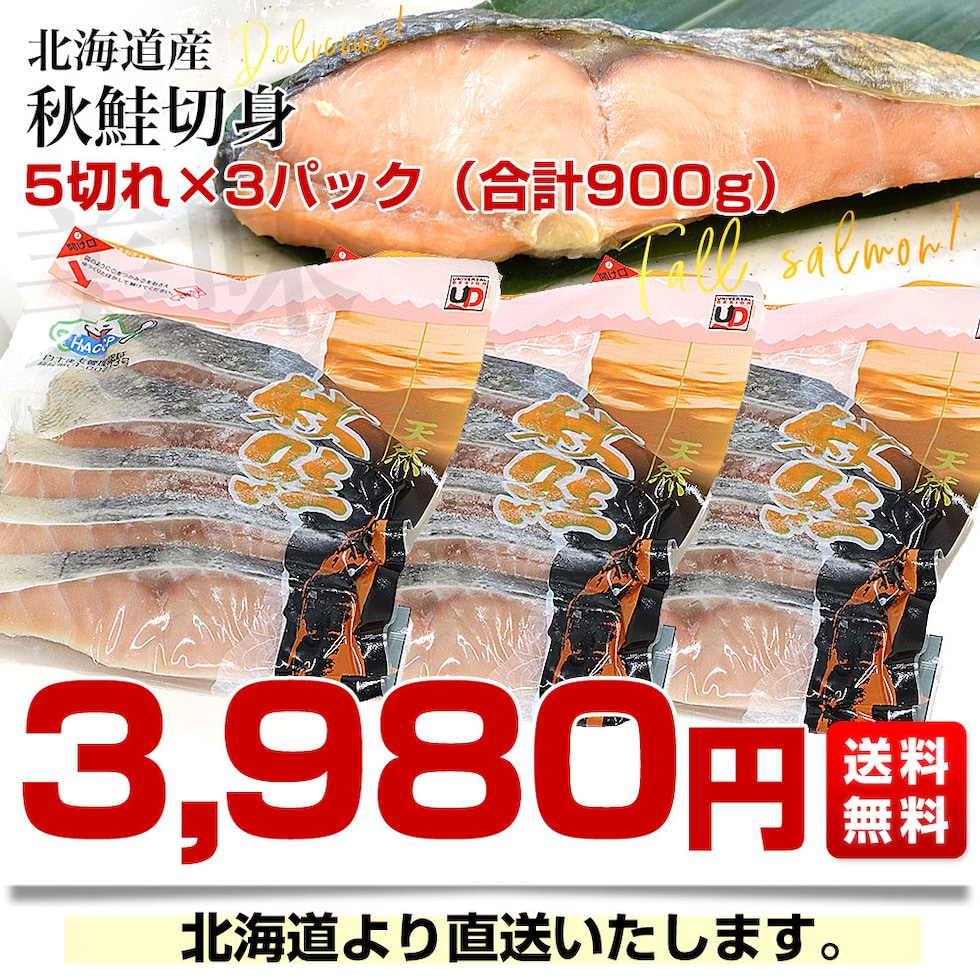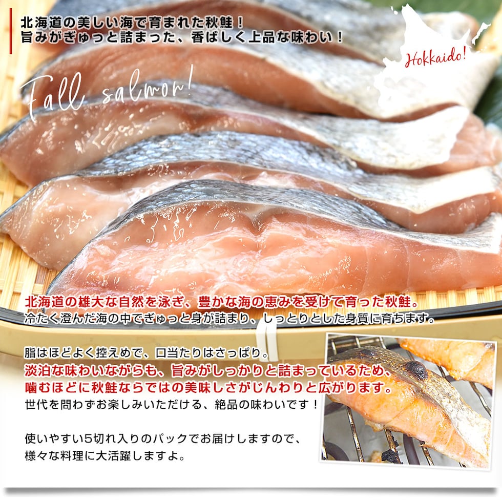 北海道より直送 北海道産 秋鮭切身 5切れ×3パック(合計900g)送料無料 しゃけ シャケ 鮭