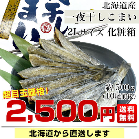 北海道産 一夜干しこまい 2Lサイズ 化粧箱 1箱 約500g(10尾前後) 送料無料 氷下魚 コマイ ※クール冷凍便