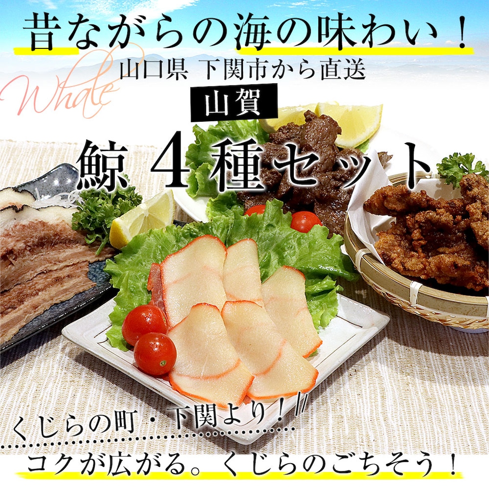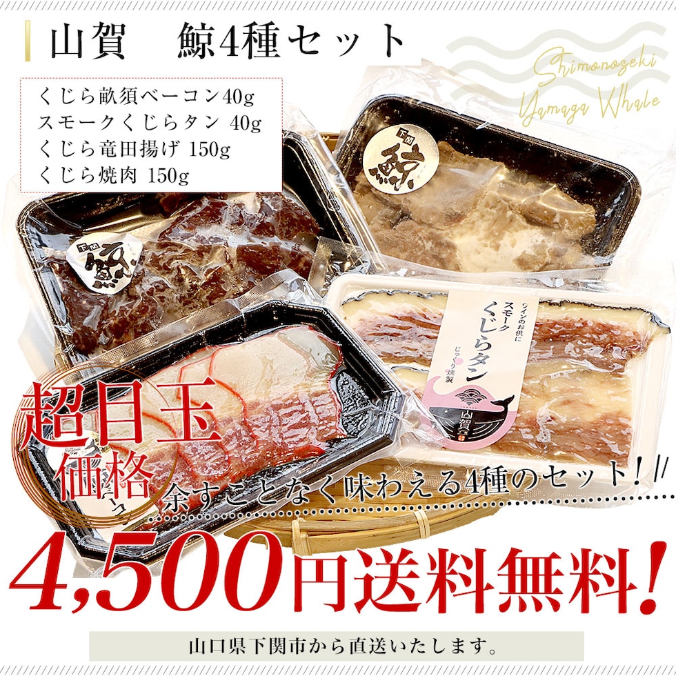 山口県下関市から産地直送 山賀 鯨4種セット(A) くじら 鯨ベーコン 鯨タン 鯨焼肉 鯨竜田揚げ 送料無料 ※クール冷凍便