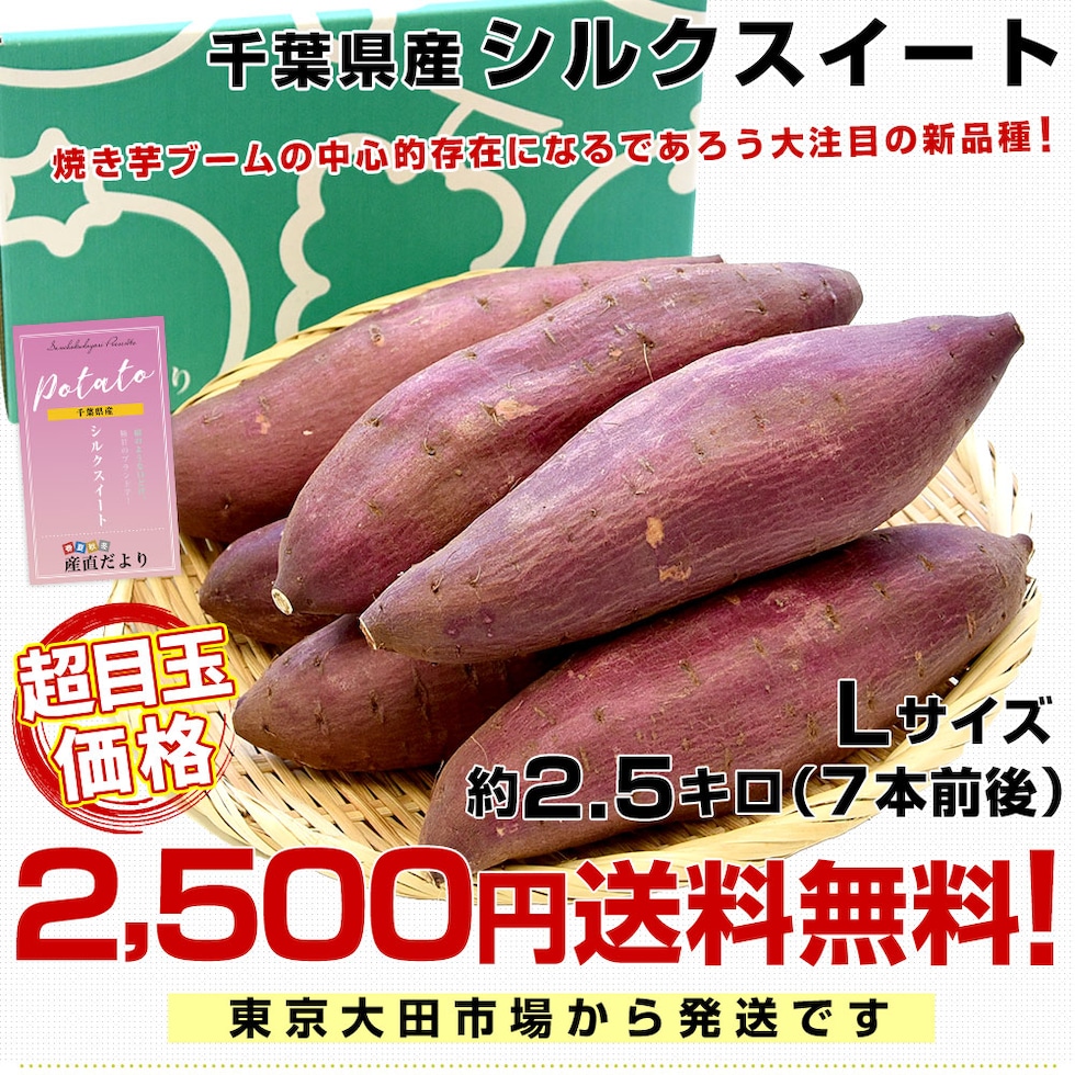 千葉県産 JAかとり シルクスイート Lサイズ2.5キロ 7本前後 送料無料 さつまいも サツマイモ 薩摩芋 新芋 市場発送