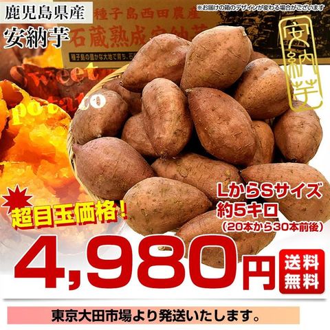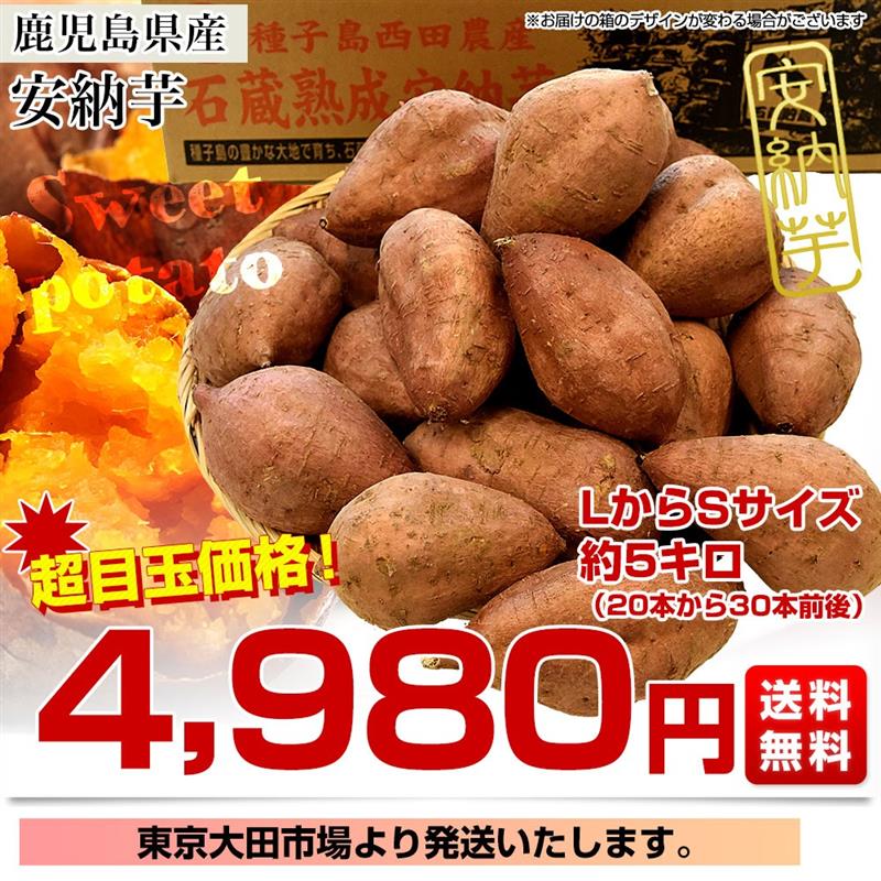 鹿児島県産 安納芋 LからSサイズ 5kg 20本から30本前後 送料無料 さつまいも サツマイモ 安納芋 種子島