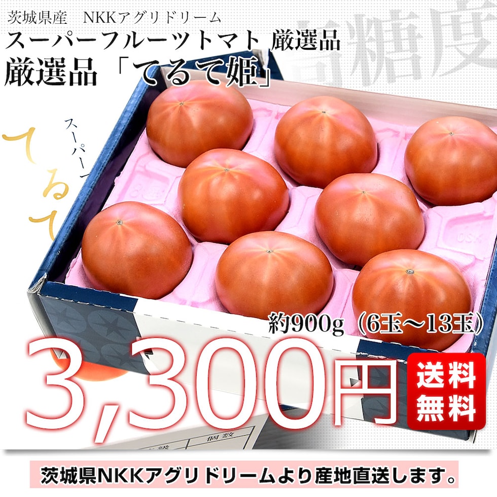 茨城県より産地直送 NKKアグリドリーム スーパーフルーツトマト 9度+ A品 大粒厳選「てるて姫」約900g(6玉から13玉) 送料無料 高糖度トマト NKKトマト