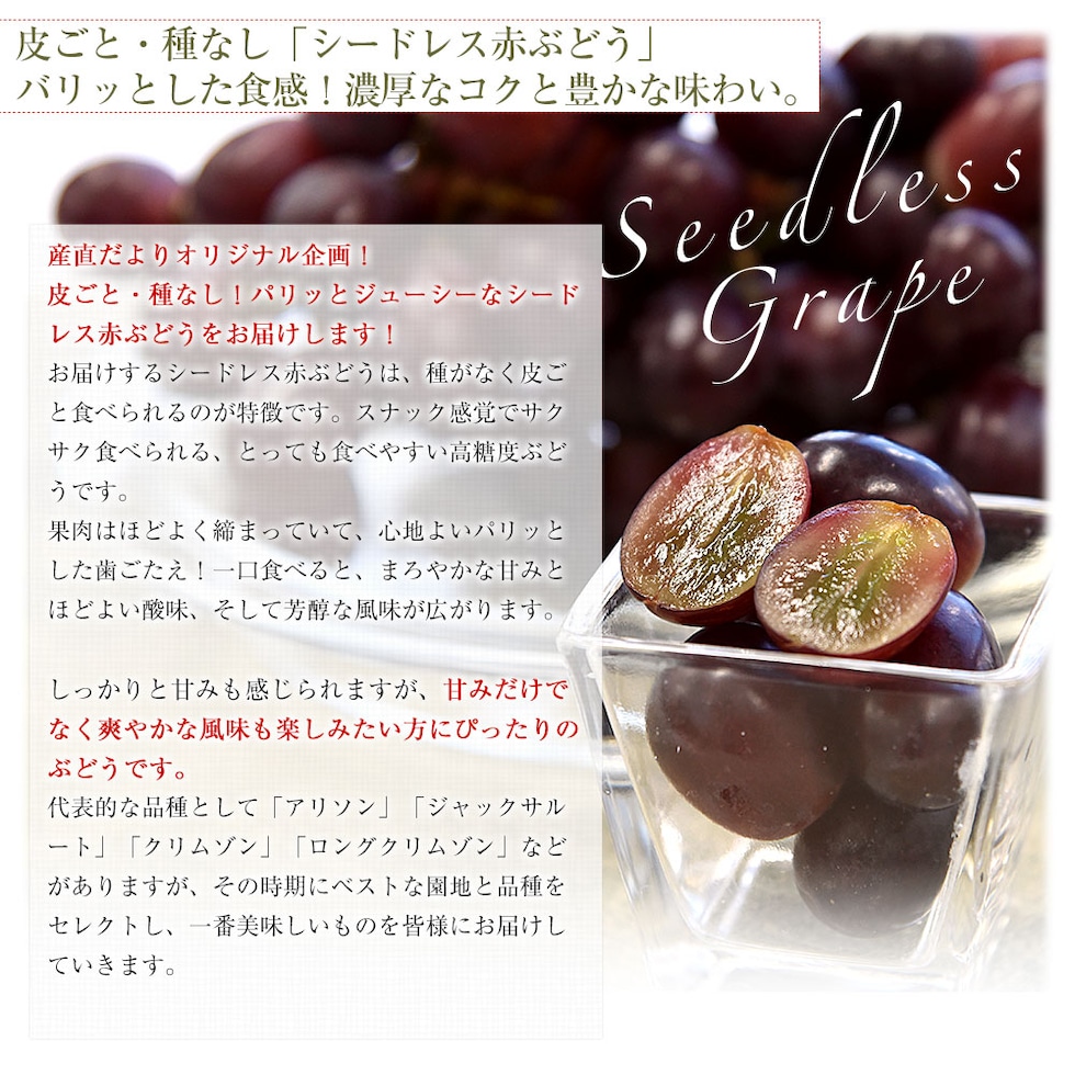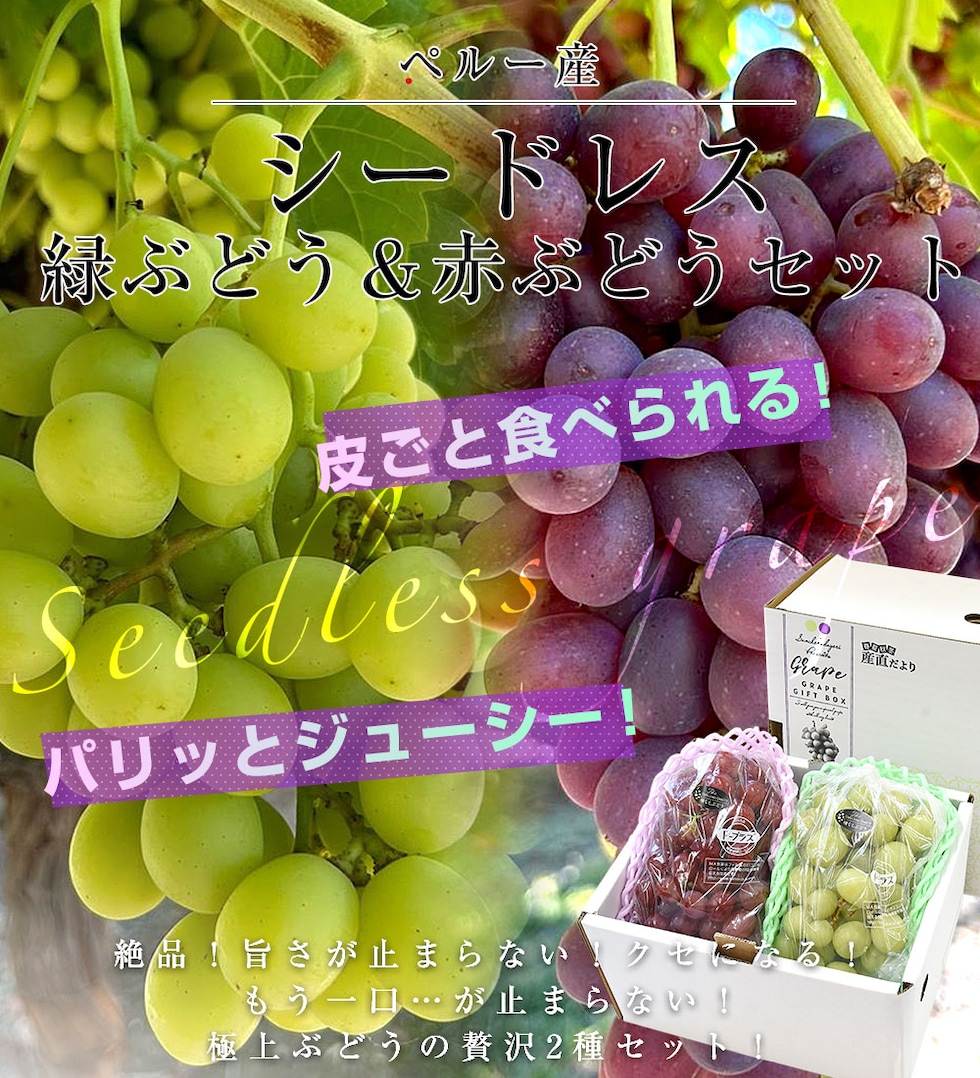 皮ごと・種なし!シードレス緑ぶどう&赤ぶどうセット!スナック感覚で皮ごと食べられる美味ぶどうを、豪華2種セットにしてお届けいたします。