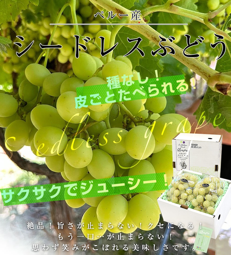 【2026年発送】皮ごと食べられる!シードレス緑ぶどう ペルー産 約1.2キロ(約600g×2入)送料無料 種なしぶどう 輸入ぶどう 海外ぶどうのレビュー