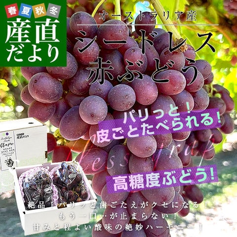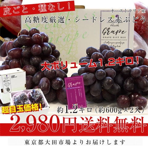 皮ごと食べられる!豊かな甘み!シードレス赤ぶどう オーストラリア産 約1.2キロ(約600g×2入)送料無料 種なしぶどう 輸入ぶどう 海外ぶどう