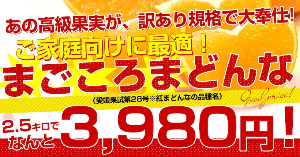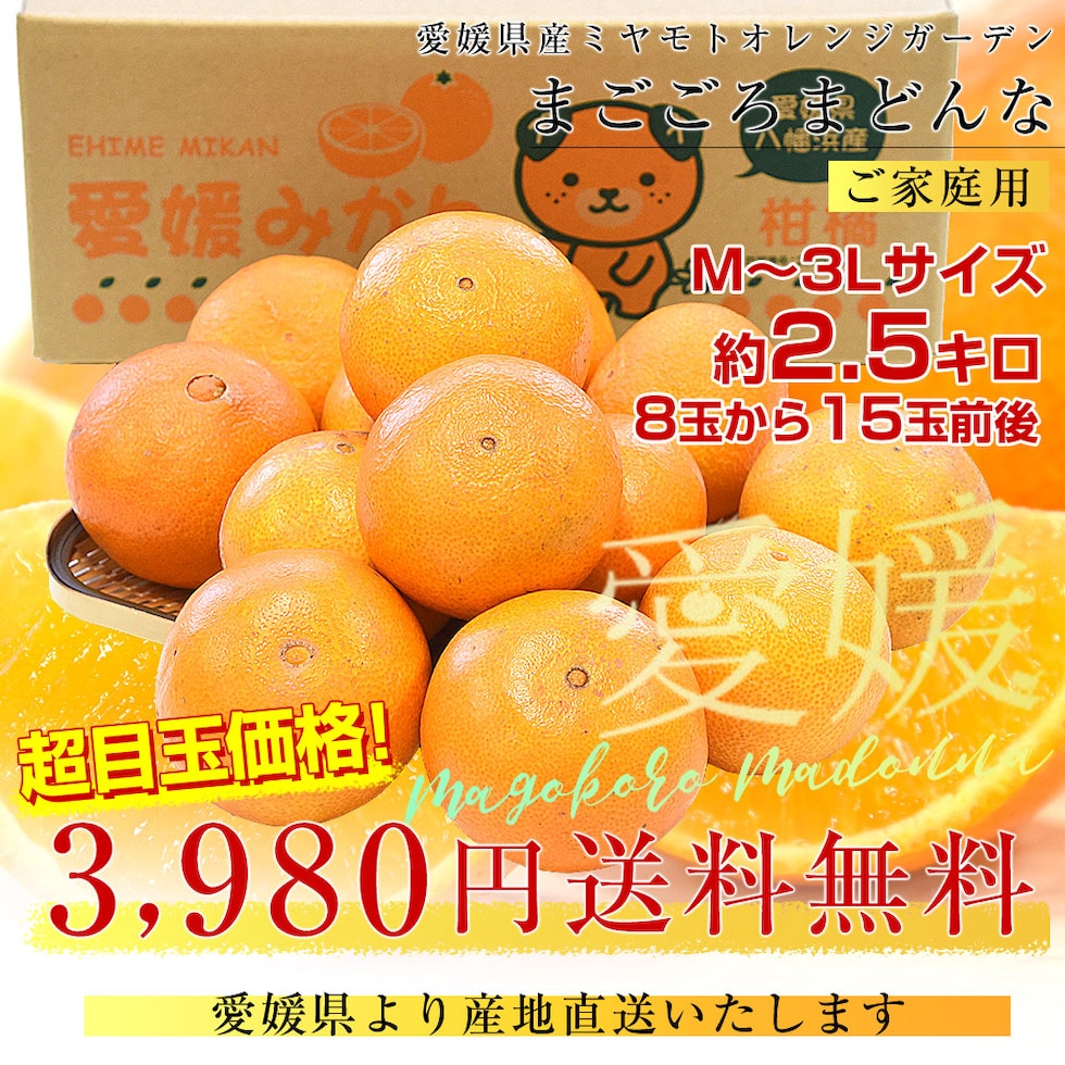 愛媛県より産地直送 まごころまどんな(愛媛果試第28号) ご家庭用 約2.5キロ Mから3Lサイズ(8玉から15玉前後) 送料無料 柑橘