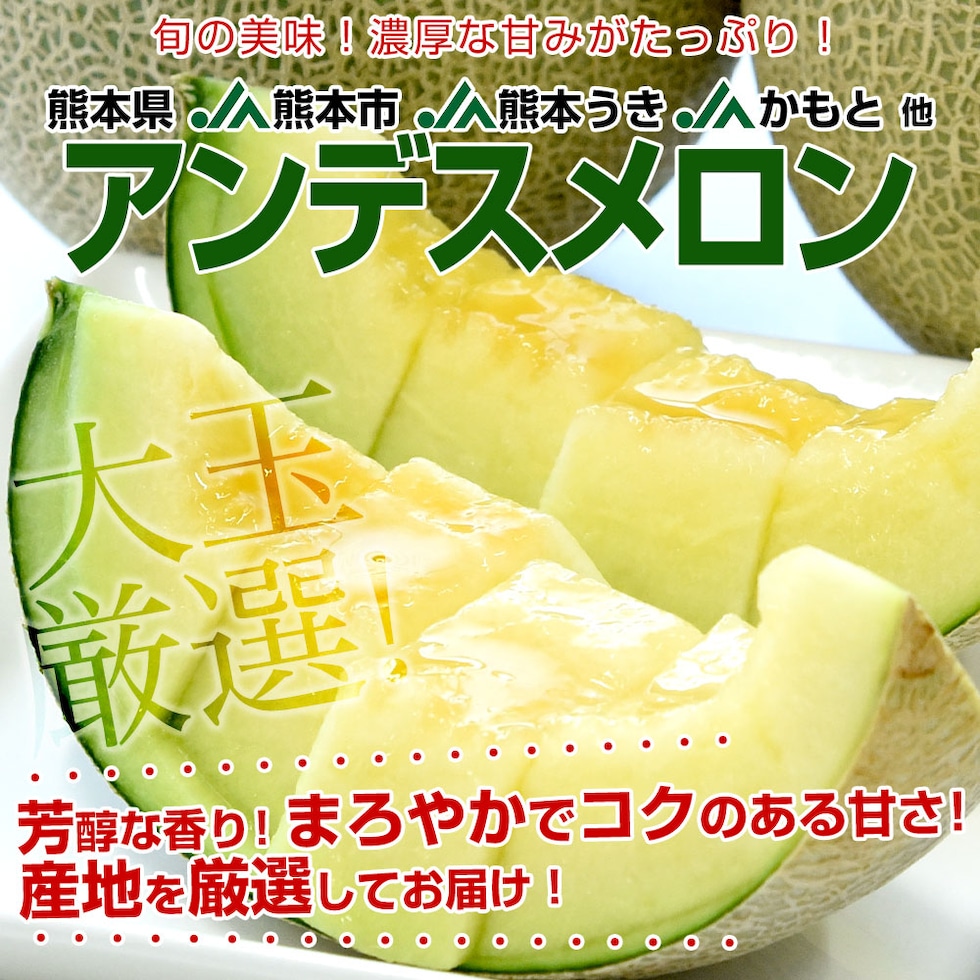 熊本県から産地直送 厳選アンデスメロン 大玉3Lサイズ 優品以上 約2.5キロ (2玉入) ※ JA熊本市 JA熊本うき JAかもと 他 送料無料 メロン 青肉
