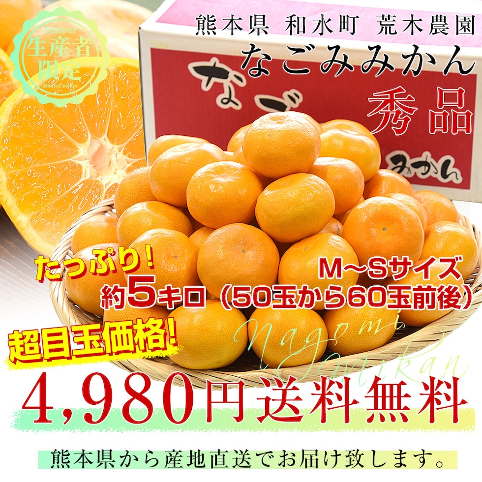熊本県から産地直送 和水町 荒木農園 なごみみかん 秀品 MからSサイズ 約5キロ(50玉から60玉前後)送料無料 ミカン 蜜柑 和水