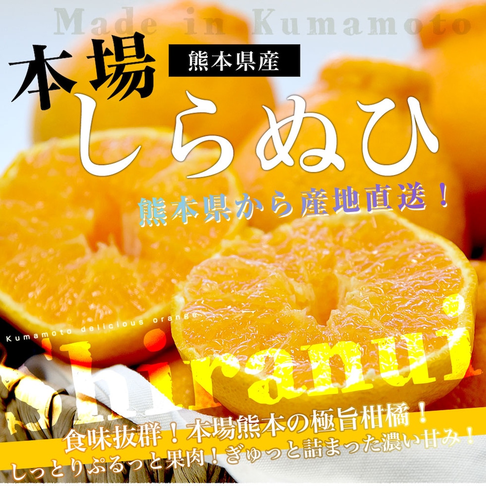 本場熊本から産地直送!極旨のしらぬひをお届けします。しっとりとした果肉に、濃い甘みが凝縮していて、抜群の美味しさです。やはり元祖は違う!と言われる、名産地ならではの高品質なしらぬひを、是非お楽しみください。