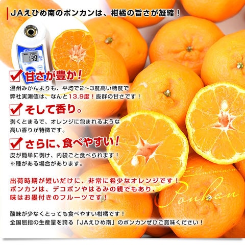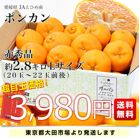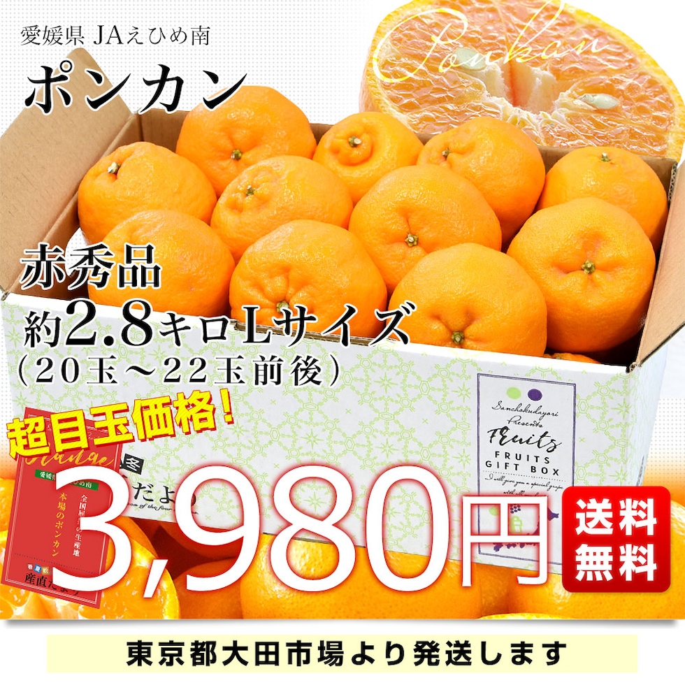 愛媛県産 JAえひめ南 ポンカン 赤秀品 Lサイズ 約2.8キロ (20玉から22玉前後) 送料無料 柑橘 オレンジ ぽんかん 市場発送