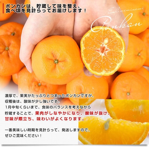 果肉が柔らかく、甘味の強いみかん。 香りがよく、内袋ごと食べられますが、種のあるものもあります。酸味が少なくとっても美味しいみかんです!一度食べたらリピートしたくなる味わいのポンカン、ぜひご賞味ください!