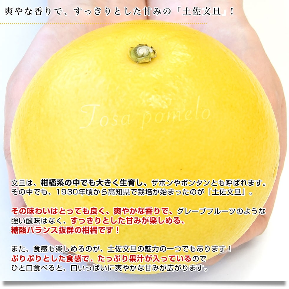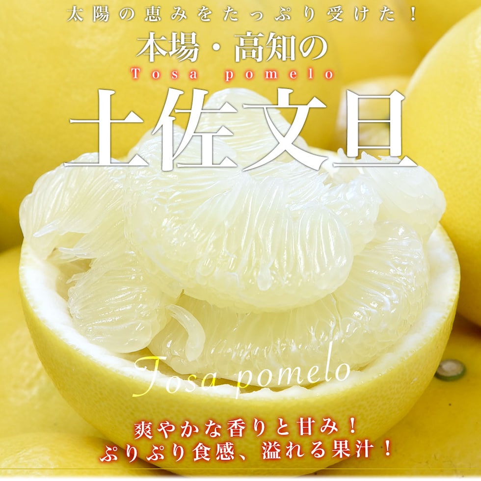 ずっしりと重たく手の平を覆ってしまうほどの大きさの土佐文旦!独特の香りと、すっきりした甘みとぷりぷりとした食感で、果汁がたっぷり入った柑橘です。高知県の特産「土佐文旦」ぜひご賞味ください!