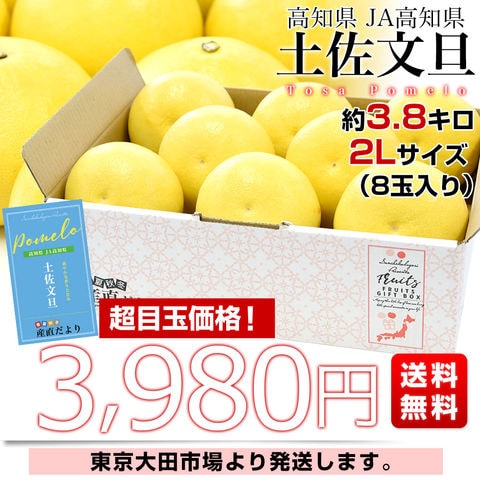 高知県産 JA高知県 土佐文旦 約3.8キロ 2Lサイズ(8玉入り)送料無料 柑橘 ぶんたん 文旦
