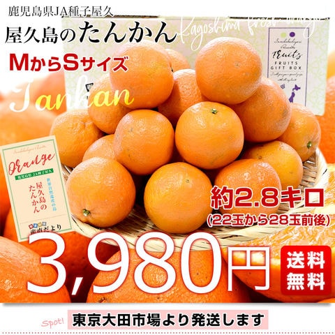 鹿児島県産 JA種子屋久 屋久島のたんかん 約2.8キロ MからSサイズ (22玉から28玉前後) 送料無料 柑橘 オレンジ タンカン 市場発送