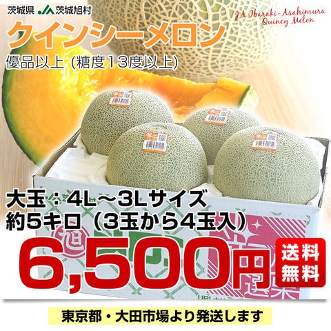 茨城県産 JA茨城旭村 クインシーメロン 優品以上 約5キロ (3玉から4玉) 4Lから3Lサイズ 送料無料 赤肉メロン めろん 赤肉