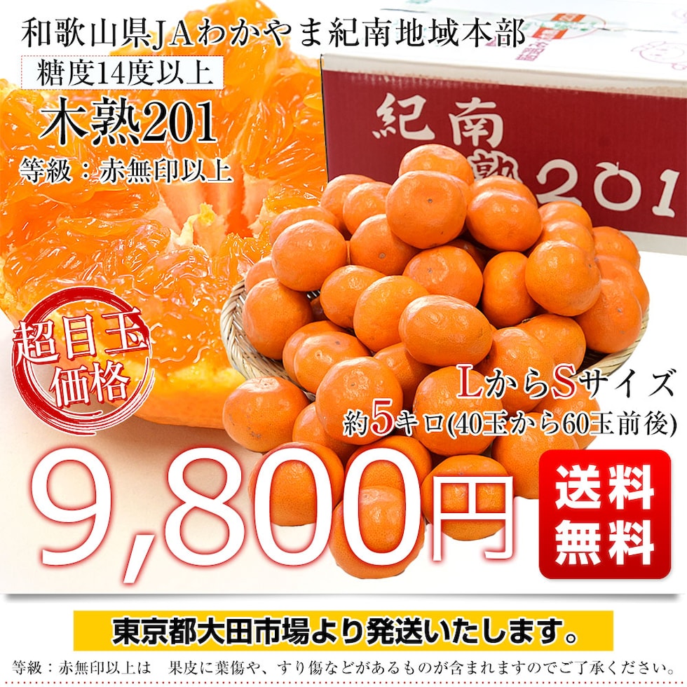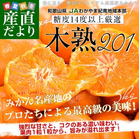 和歌山県 JAわかやま紀南地域本部 高糖度みかん「木熟201」赤無印以上 糖度14度以上 LからSサイズ 約5キロ (40玉から60玉前後) 送料無料 蜜柑 ミカン 柑橘