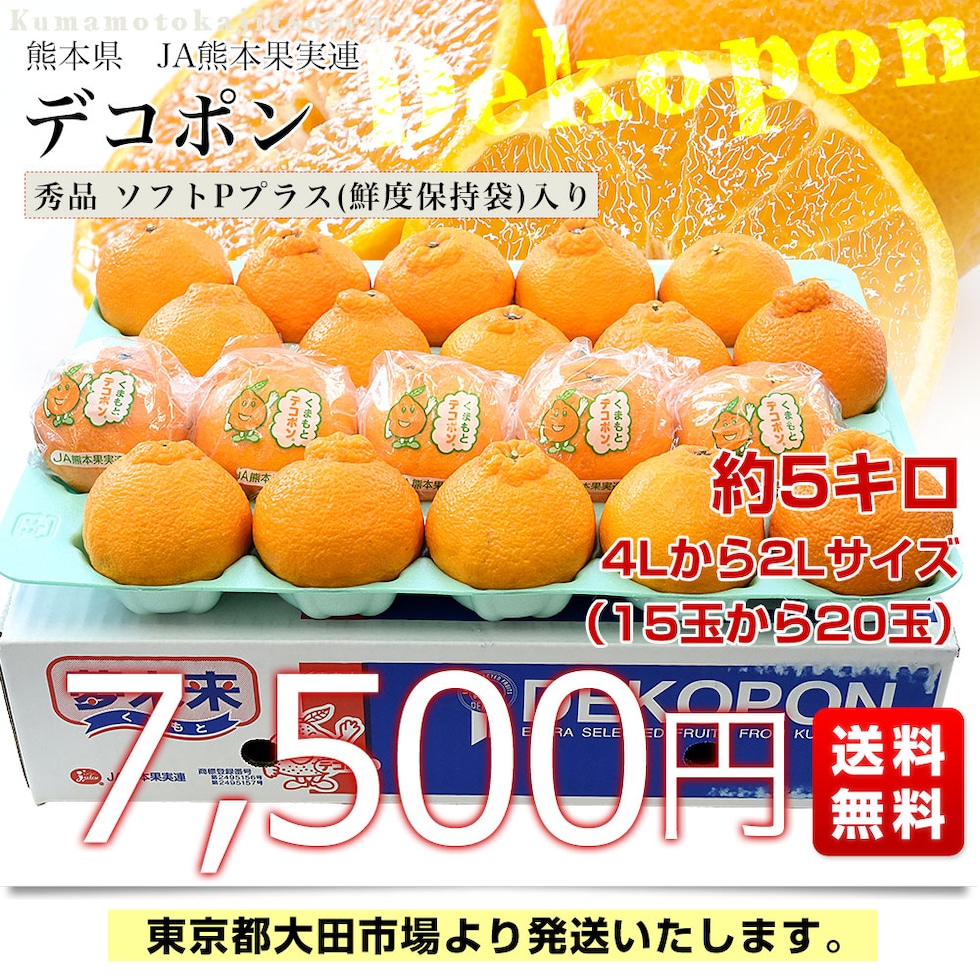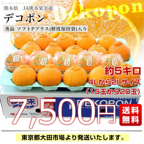 熊本県 JA熊本果実連 デコポン 秀品 4Lから2Lサイズ 約5キロ(15玉から20玉入り) ソフトPプラス(鮮度保持袋)入り 送料無料 柑橘 でこぽん