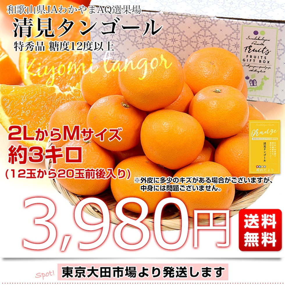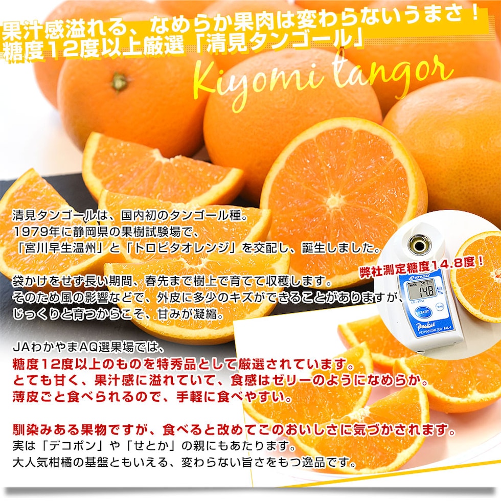和歌山県 JAわかやまAQ選果場 清見タンゴール 特秀品 糖度12度以上 約3キロ 2LからMサイズ (12玉から20玉前後) 送料無料 柑橘 オレンジ