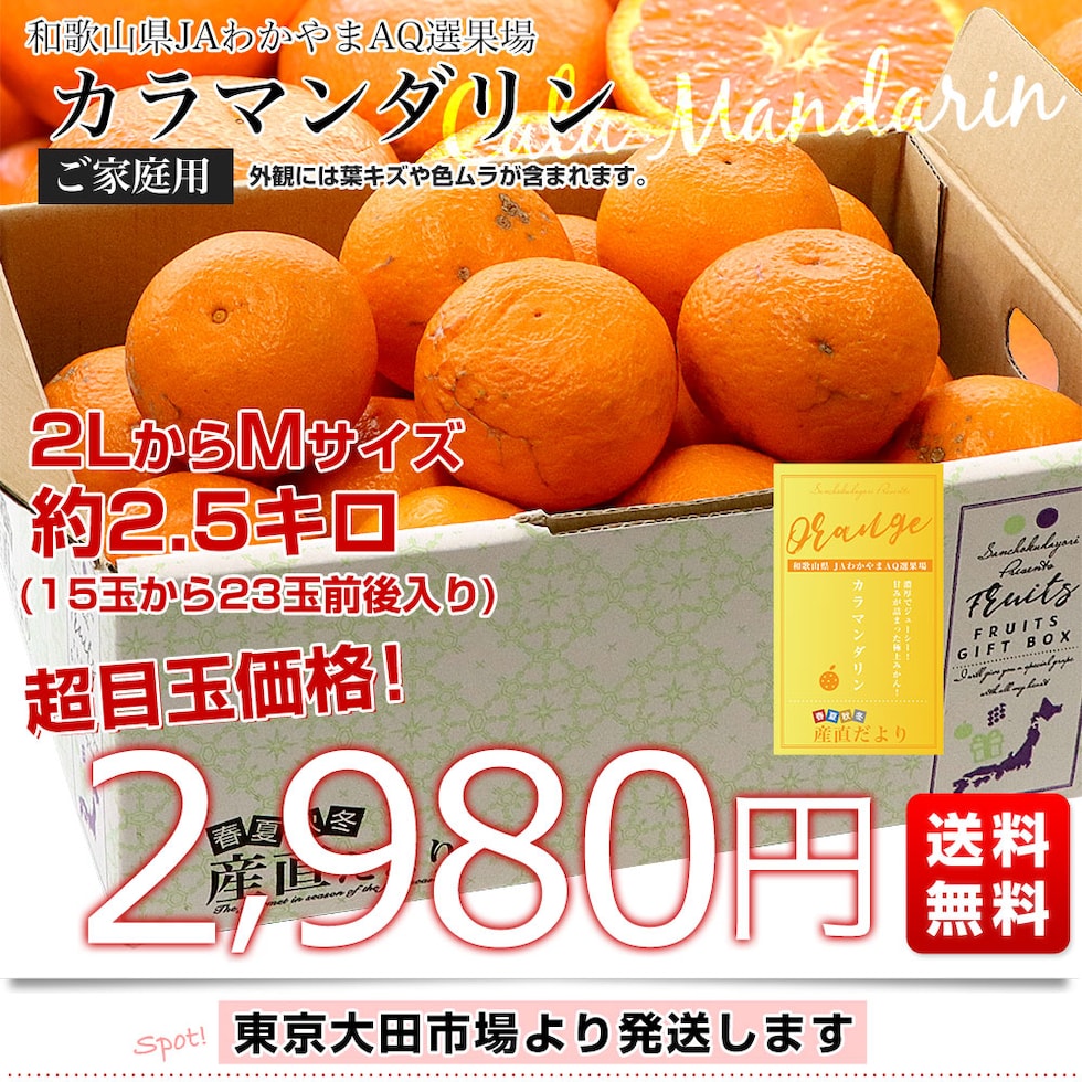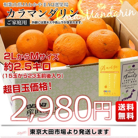 和歌山県 JAわかやまAQ選果場 カラマンダリン ご家庭用 約2.5キロ 2LからMサイズ (15玉から23玉前後) 送料無料 柑橘 みかん