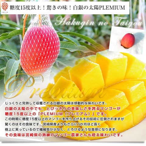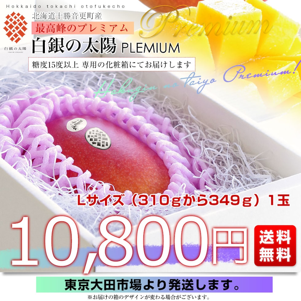 北海道産 完熟マンゴー「白銀の太陽PLEMIUM(プレミアム)」Lサイズ1玉(310gから349g)まんごー 送料無料