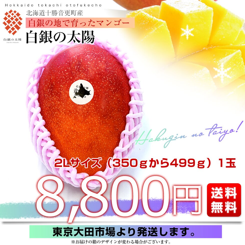北海道産 完熟マンゴー「白銀の太陽」2Lサイズ1玉(350gから449g)まんごー 送料無料