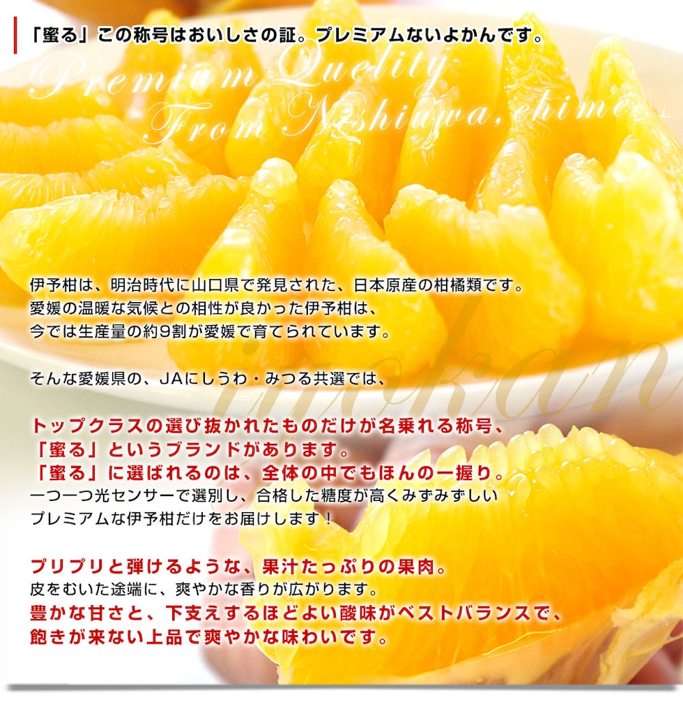 愛媛県産 JAにしうわ みつる共選 プレミアムいよかん 蜜る(みつる) 2LからLサイズ 約3キロ(11玉から14玉前後) 送料無料 にしうわ 西宇和 伊予柑