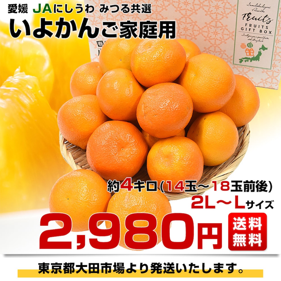愛媛県産 JAにしうわ みつる共選 いよかん ご家庭用 2LからLサイズ 約4キロ(14玉から18玉前後) 送料無料 にしうわ 西宇和 伊予柑