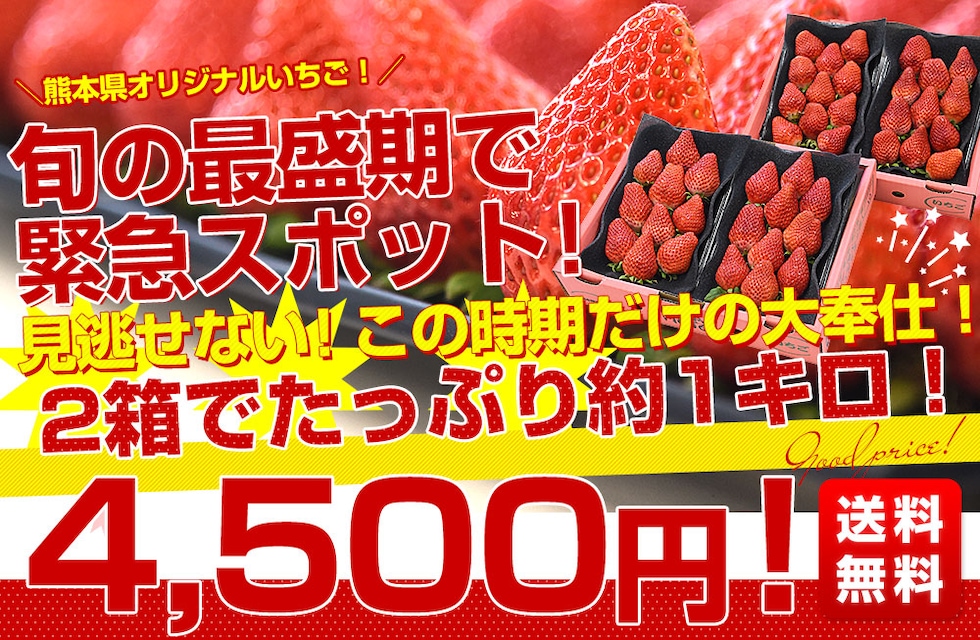 熊本県産 JA熊本市 超盛りゆうべに 秀品 たっぷり2箱 合計 約1キロ(約250g×4入り)計28粒から44粒 送料無料 いちご 苺 イチゴ