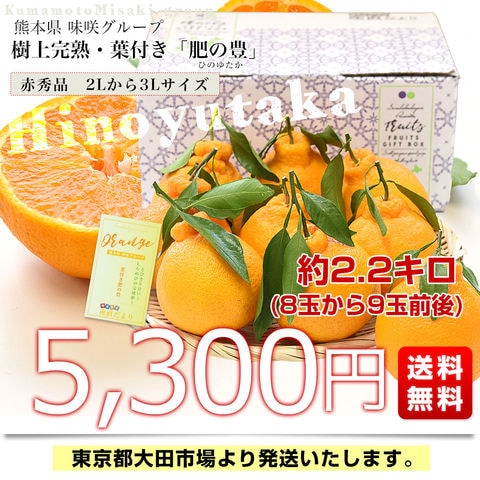 熊本県味咲グループ 樹上完熟・葉付き「肥の豊(ひのゆたか)」赤秀品 2Lから3Lサイズ 約2.2キロ(8玉から9玉前後)送料無料 不知火 しらぬひ 柑橘