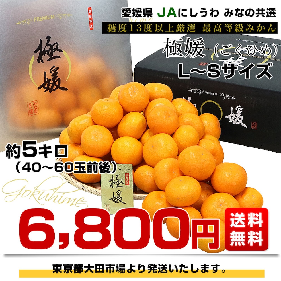 愛媛県 JAにしうわ みなの共選 最上位等級みかん「極媛(ごくひめ)」約5キロ LからSサイズ (40玉から60玉前後) 送料無料 みかん プレミアムみかん