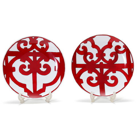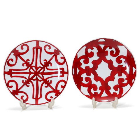 エルメスといえば、従来はスカーフやネクタイ等に見られる馬具などの緻密なデッサンによるプリントを思い浮かべがちですが、このガダルキヴィールは、そういった緻密なプリントとは明らかに異なる雰囲気を持っており、プレート全体に描かれた思わず目を奪われる赤色の幾何学模様を見ていると、確かにそこに情熱の国スペインを彷彿とさせるものを感じとることができます。