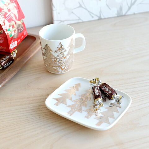 マリメッコ クーシコッサ マグカップ 250ml & プレート 15x12cm セット ゴールド/ホワイト marimekko マグ プレート ギフト 耐熱 電子レンジ対応 結婚祝い プレゼント 贈り物 【Marimekko マリメッコ】【食器 カトラリー】【ギフト】