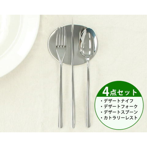 | 内容 | ・デザートスプーン×1 ・デザートナイフ×1 ・デザートフォーク×1 ・カトラリーレスト×1 |