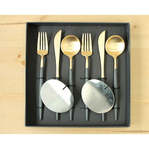 クチポール ゴア ブラックマットゴールド ディナーセット(ナイフ・フォーク・スプーン) + カトラリーレスト 8点セット ギフトボックス 正規販売代理店 カトラリー ナイフレスト 化粧箱付 結婚祝い プレゼント 贈り物 ギフトセット 【クチポール Cutipol】【食器 カトラリー】【ギフト】