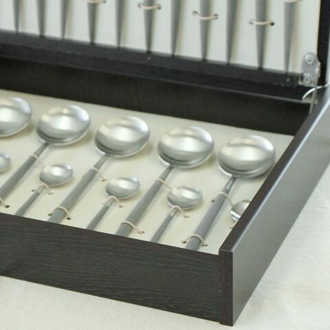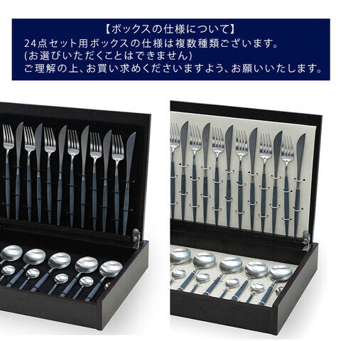 | 内容 | ・ディナースプーン×6 ・ディナーナイフ×6 ・ディナーフォーク×6 ・コーヒー/ティースプーン×6 ・クチポール専用木箱(木箱の仕様は若干、変更となる場合があります) |