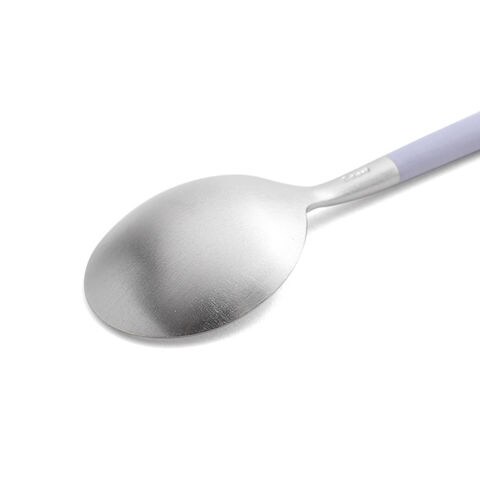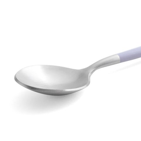 デザインのよさだけでなく、人間工学に基づいて設計されているため、想像以上に使いやすいカトラリーです。持ち手は樹脂なので、さらっとしたマットな質感が心地よく、木製のように軽く、やさしく手に馴染みます。アイスやプリンなどにも使うことができるサイズです。