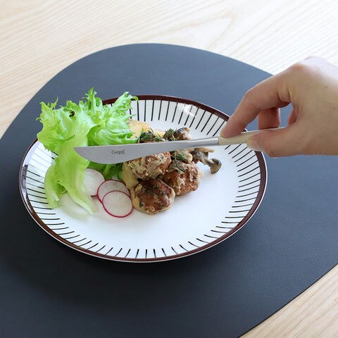 デザインのよさだけでなく、人間工学に基づいて設計されているため、想像以上に使いやすいカトラリーです。持ち手は樹脂なので、さらっとしたマットな質感が心地よく、木製のように軽く、やさしく手に馴染みます。小回りがきく上にキレがよく、しっかりと料理を切り分けることができます。