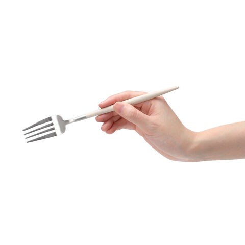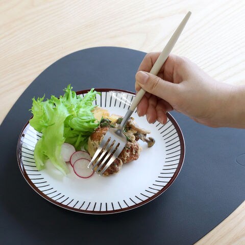 デザインのよさだけでなく、人間工学に基づいて設計されているため、想像以上に使いやすいカトラリーです。持ち手は樹脂なので、さらっとしたマットな質感が心地よく、木製のように軽く、やさしく手に馴染みます。角がなめらかでパスタなどをくるくると巻きやすく、食事が一層楽しくなります。