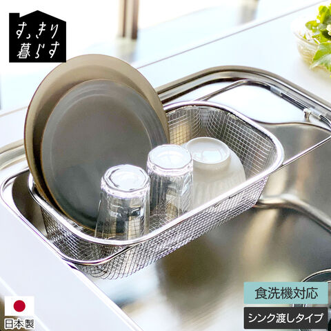 すっきり暮らす水切りかご 深型 シンク渡しタイプ 日本製 ステンレス ギフト 結婚祝い プレゼント 贈り物 【キッチン用品】【ギフト】