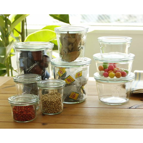 ガラス素材のため、匂いが付きにくく、酸にも強く、保存に大変便利です。ウェックは蓋(フタ)もガラスでできているため、錆びる心配がなく、長期の保存にも適しています。上から見た際にも何が入っているのか分かるため、引き出し棚での収納にも便利です。