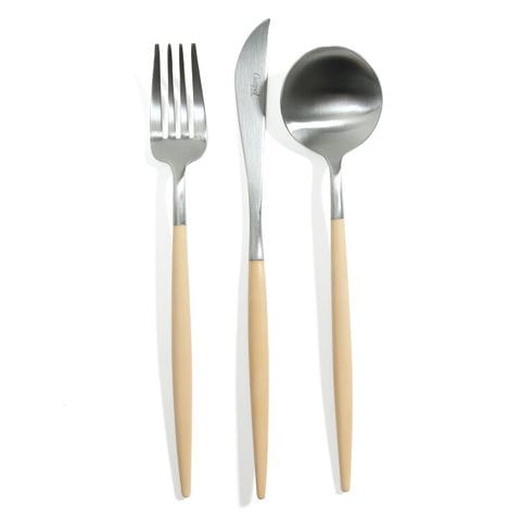 速水もこみちさん別注カラー クチポール ゴア ベージュ ディナー3点セット(ディナーナイフ・ディナーフォーク・ディナースプーン) Cutipol GOA 正規販売代理店 カトラリー ブラッシュド マット 【クチポール Cutipol】【食器 カトラリー】