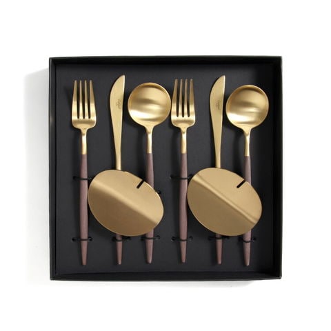 クチポール ゴア ブラウンマットゴールド ディナーセット(ナイフ・フォーク・スプーン) + カトラリーレストゴールド 8点セット ギフトボックス 正規販売代理店 カトラリー 化粧箱付 結婚祝い プレゼント 贈り物 ギフトセット 【クチポール Cutipol】【食器 カトラリー】【ギフト】